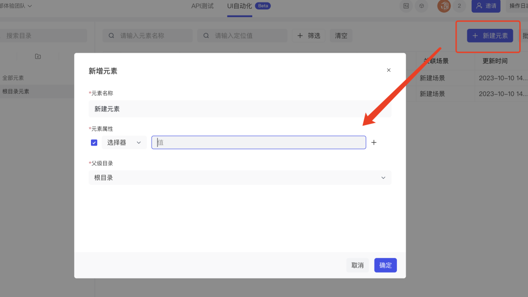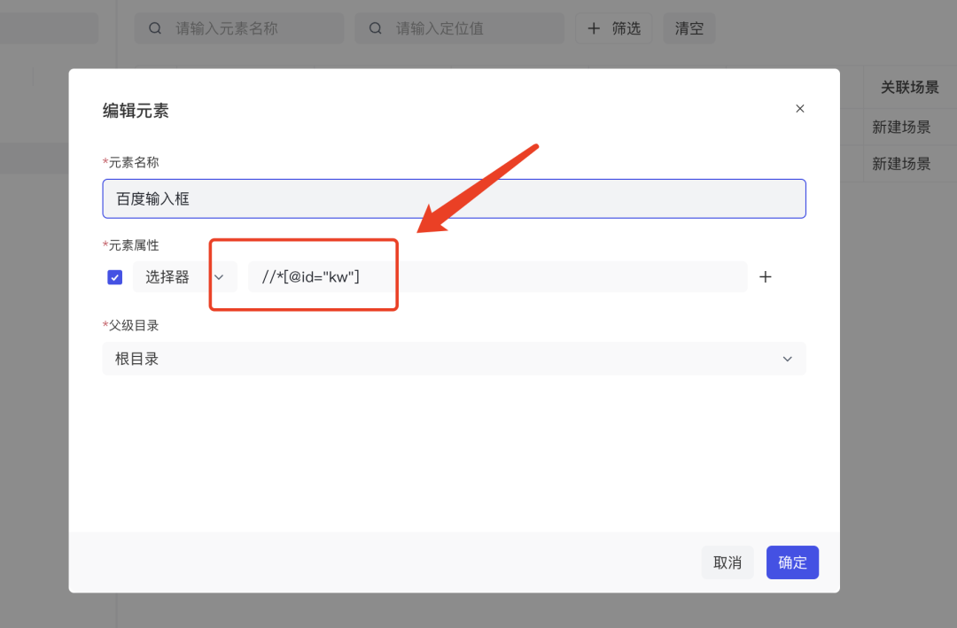 元素管理中可以创建元素,需要填入元素的Xpath值。